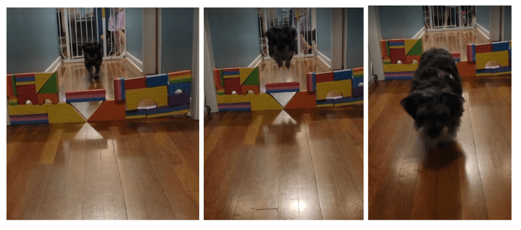 My seven year old was determined to help Piper become an expert jumper like her sister, Izzy. With peanut butter treats in hand, she successfully taught our Miniature Schnauzer how to jump!