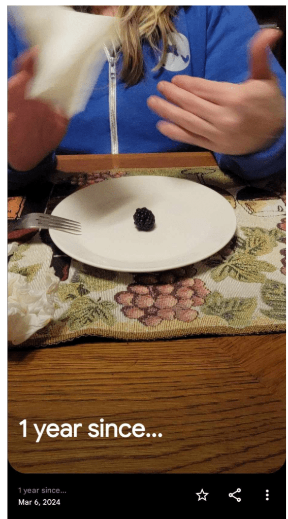 Why did I take a picture of a single blackberry on my friend’s plate?